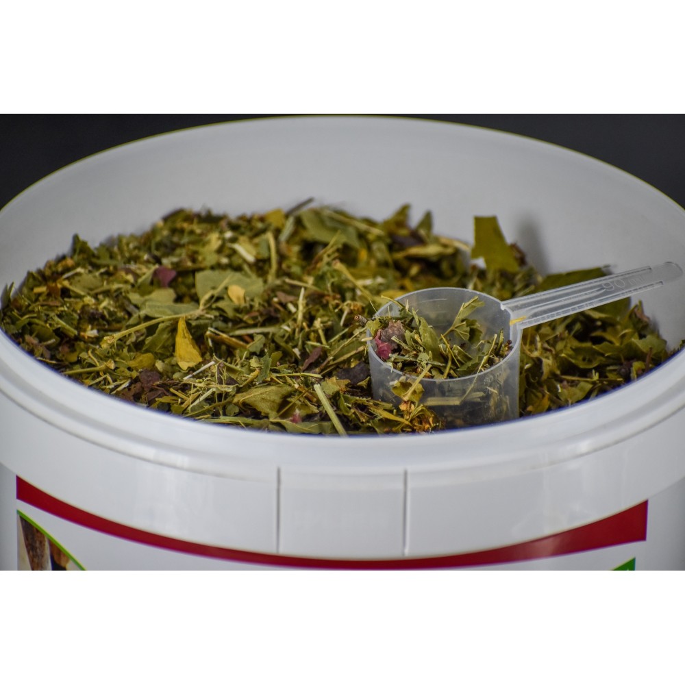 mon cheval apprécie le mélange de plantes il le prend dans grain ????pour l’instant pas de signes significatifs d amélioration mais je continue la cure ..